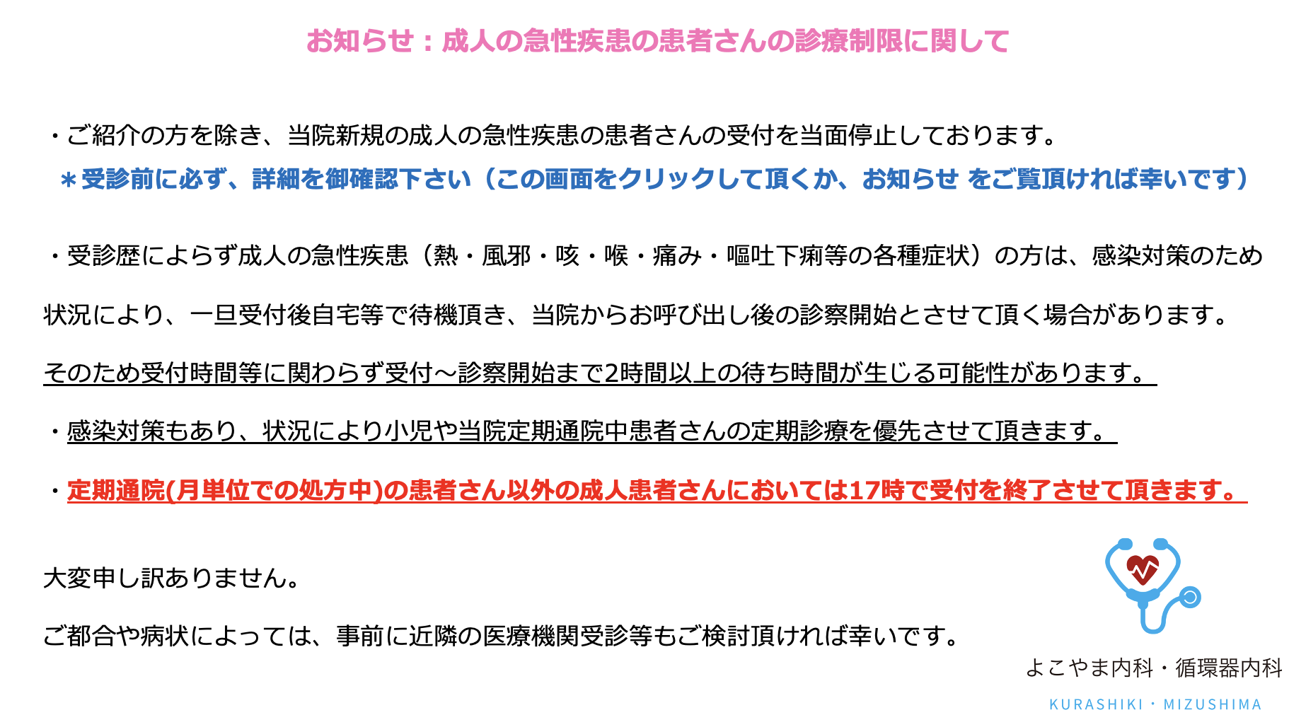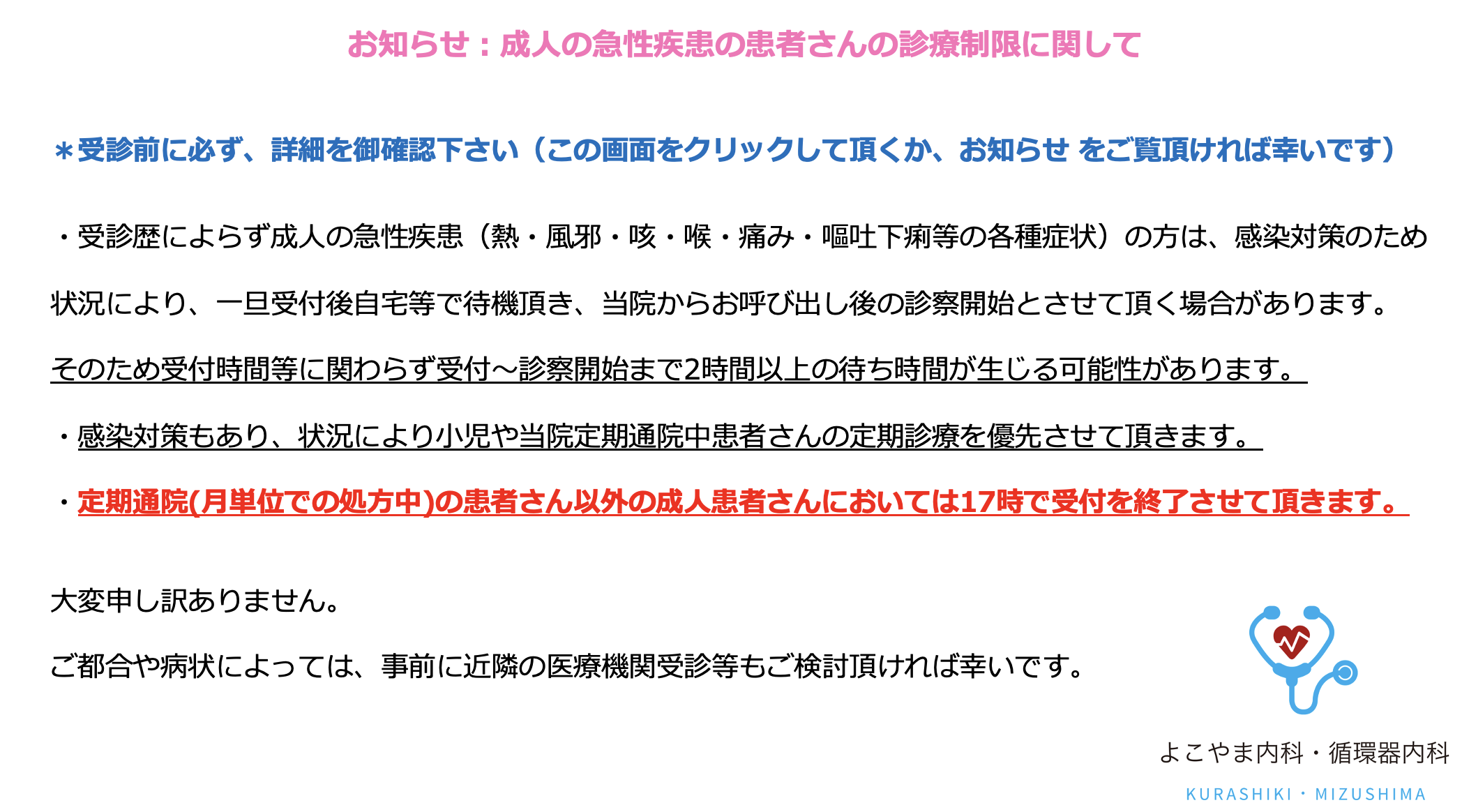 *当院を受診される患者さんへのお願い(*受診前に必ずご覧下さい)